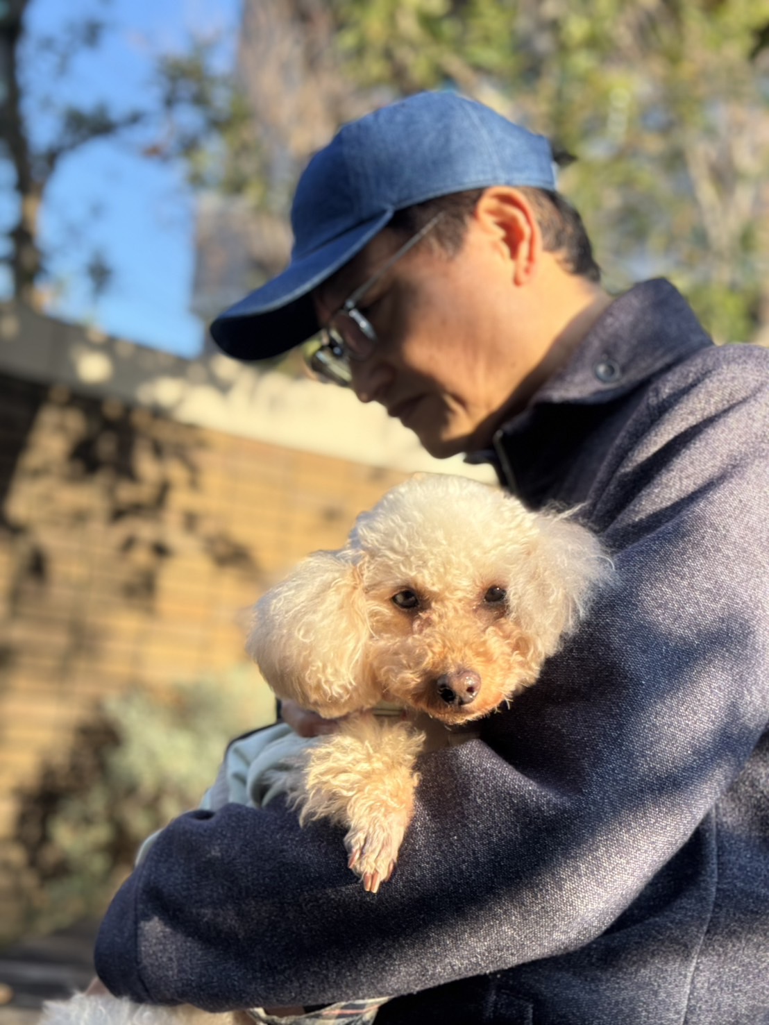 昨年家族に迎えた保護犬と。昔は苦手だった犬も、今では癒やしの存在となっています。(ハヤシ セイジ)