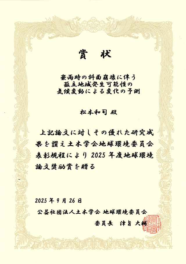 土木学会地球環境委員会 土木学会 2025年度地球環境論文奨励賞